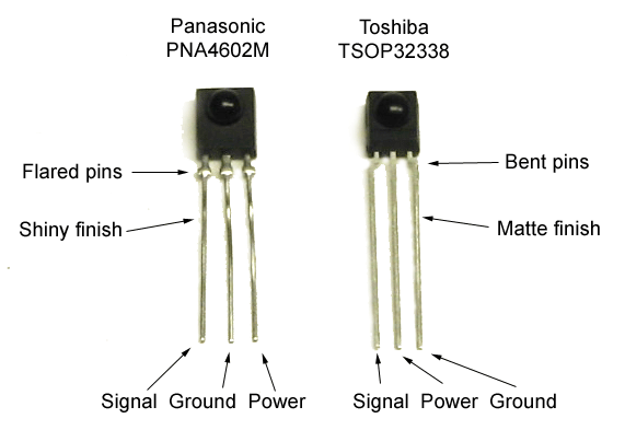 Panasonic pna4602m and vishay tsop4038 pinouts the pinouts are identical although the tsop4038 allows a much wider voltage range of 2 7 v to 5 5 v.
